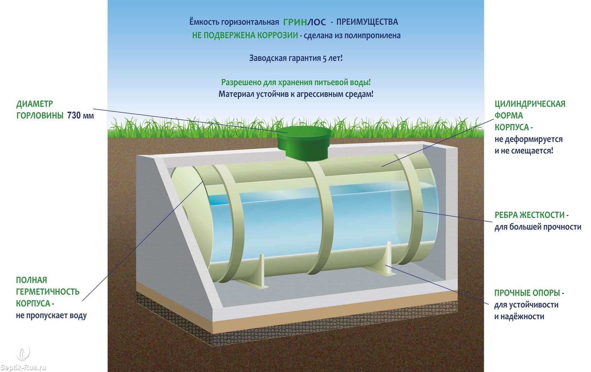 Особенности ГРИНЛОС Емкость 20 кубов горизонтальной цилиндрическая