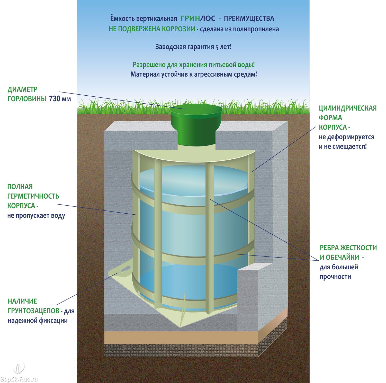 Особенности ГРИНЛОС Емкость 6 кубов вертикальная цилиндрическая
