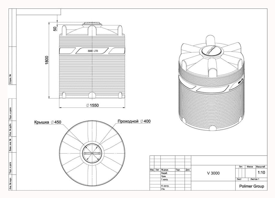 Вертикальная емкость V 3000 литров Polimer Group – изделие полной заводской готовности, поставляется полностью укомплектованной. В комплект поставки входят: