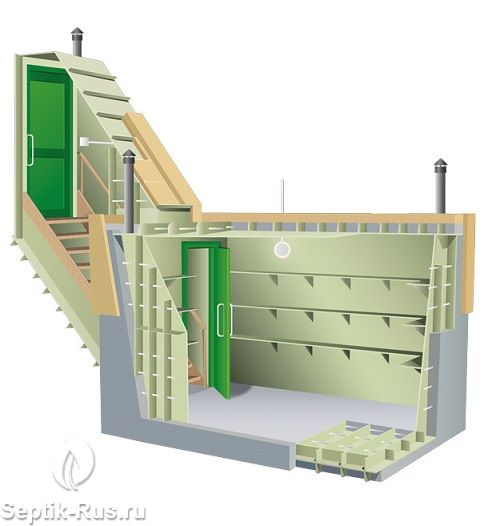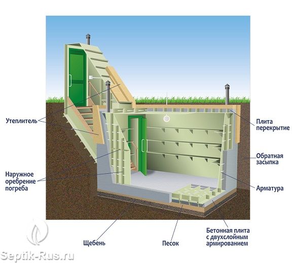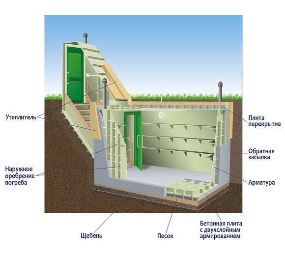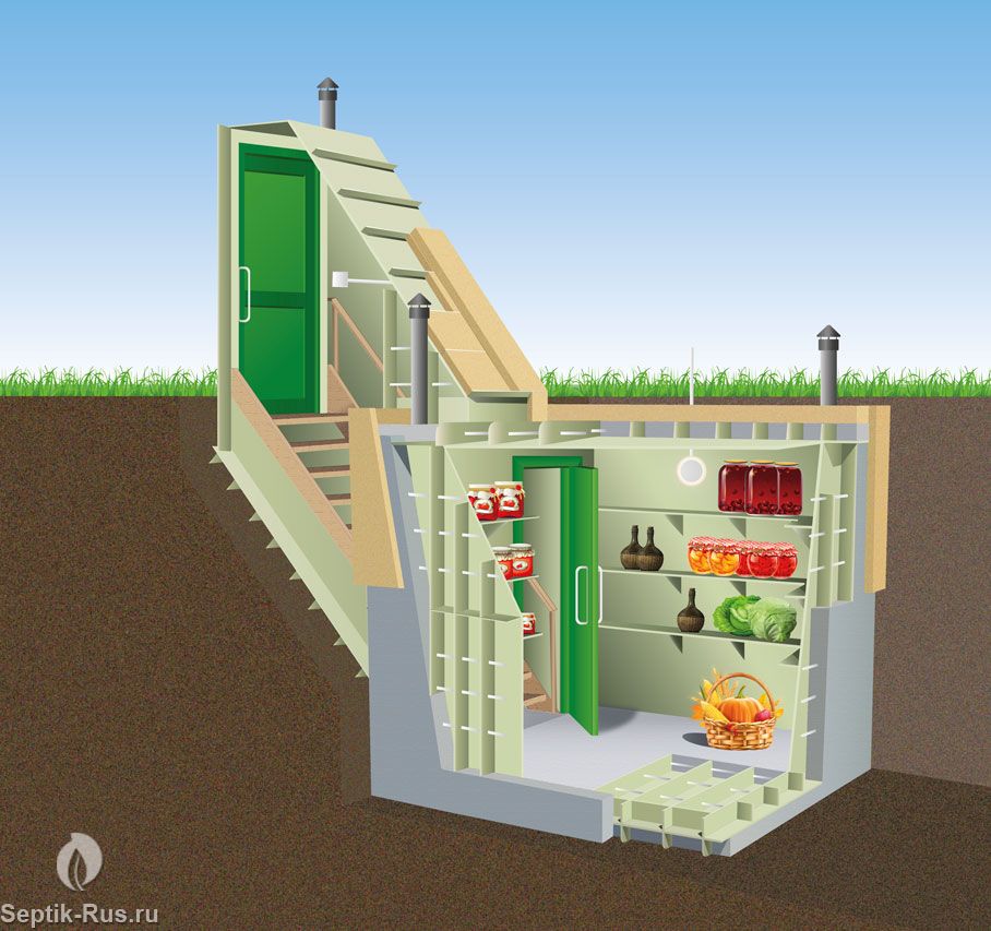 Вертикальный вход в погреб и двери доставляются отдельно и монтируются на участке.
