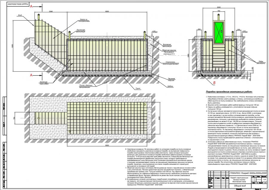 Монтажные схемы Гринлос Погреб ДТ 5000*2000*2000