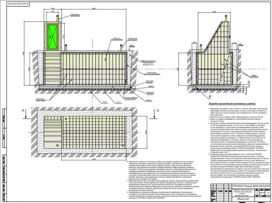 Монтажные схемы Гринлос Погреб ДТБ 4000*2000*2000