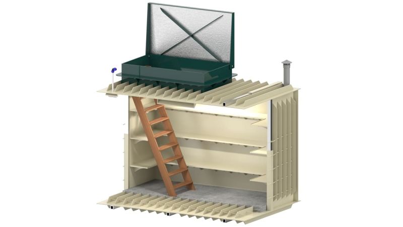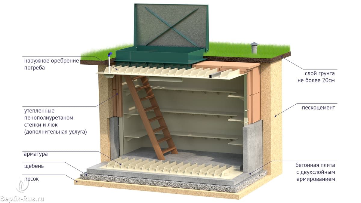 Вертикальный вход в погреб и двери доставляются отдельно и монтируются на участке.