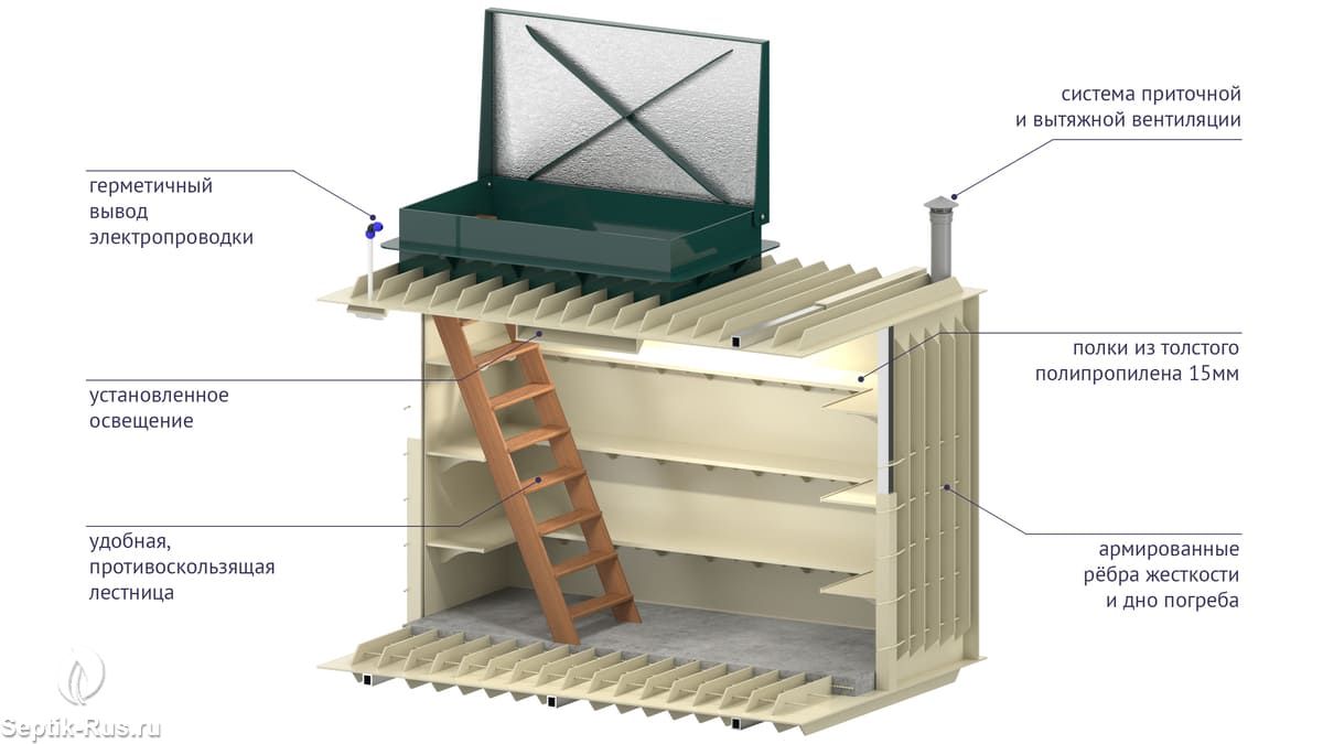 Что можно дополнительно приобрести для внутреннего обустройства погреба