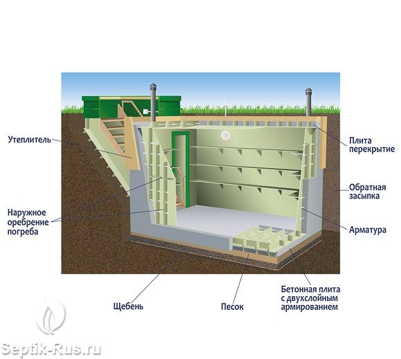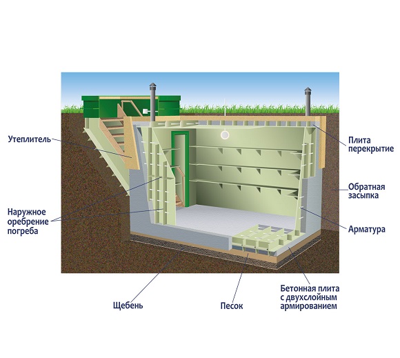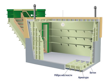 Вертикальный вход в погреб и двери доставляются отдельно и монтируются на участке.