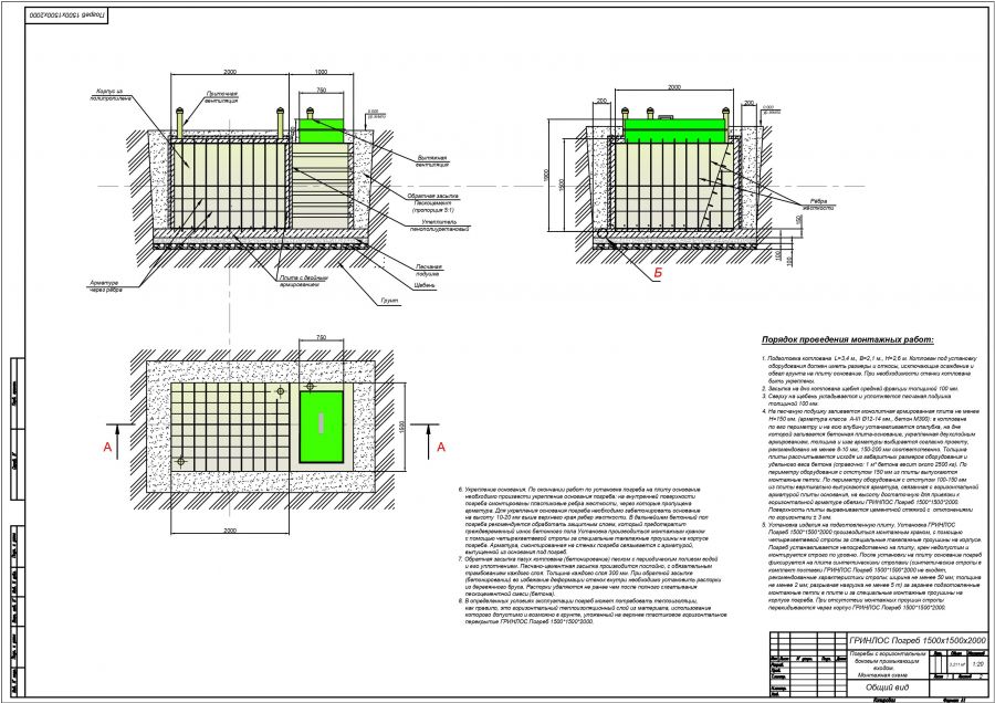 Монтажные схемы Гринлос Погреб ЛКТБ 1500*1500*2000
