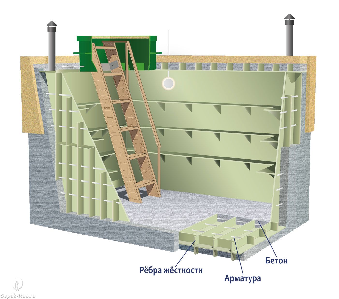 Обратная засыпка (бетонирование) Гринлос Погреб ЛС 3500*1500*2000