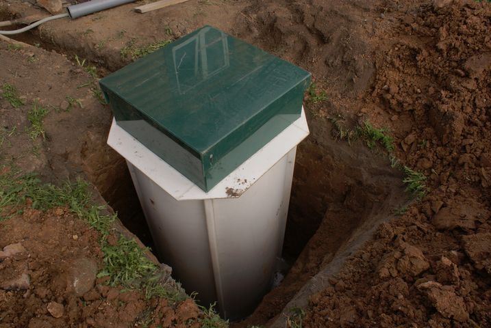 Вариант 1: Отведение очищенной воды из септика АКВАЛОС 8 R (h=2,28м) принудительно или самотеком в дренажный колодец.