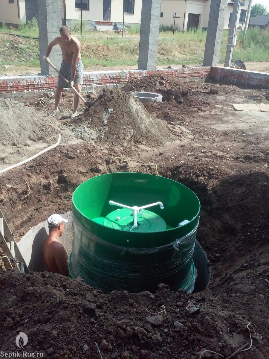 Септик Альта Био 3 монтируется по той же схеме, что и другие очистительные сооружения такого типа. Монтаж начинается с рытья котлована, размерами на 15-20 см больше с каждой стороны, чем сам септик. Это условие необходимо для упрощения монтажных работ. Дно котлована выравнивается, засыпается песчаная подушка. На нее ставят бетонное основание (при необходимости), к которому затем крепят септик с помощью натяжных тросов.