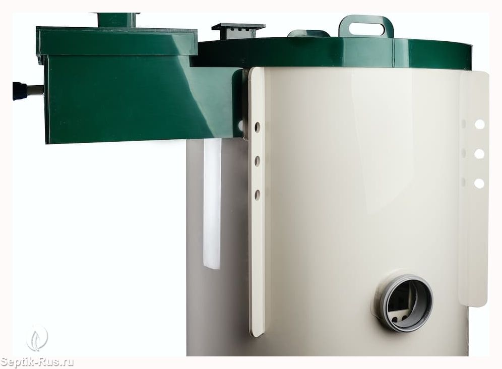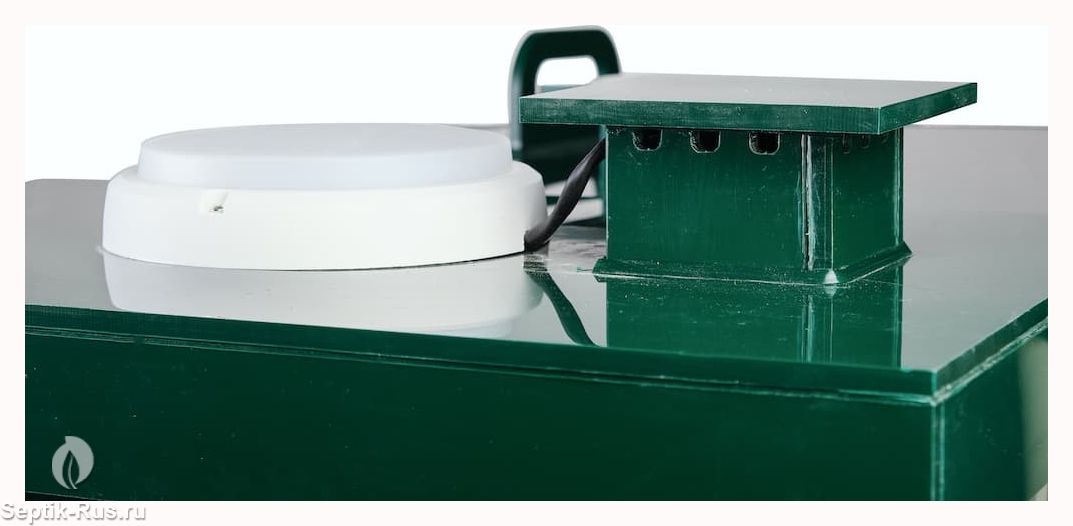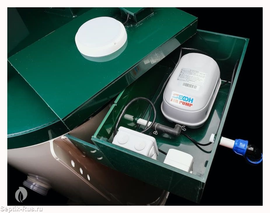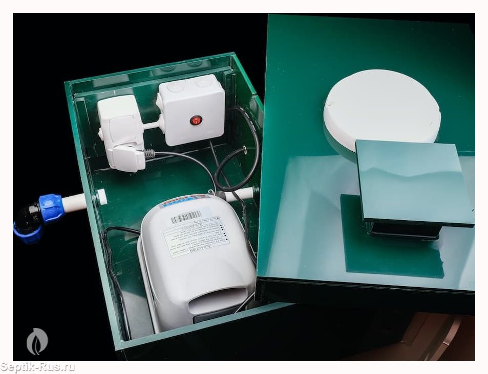 Блок управления вынесен из корпуса станции. Если даже станция переполнится, то блок автоматики с компрессором не зальет. Не нужно тратиться на ремонт электрики.