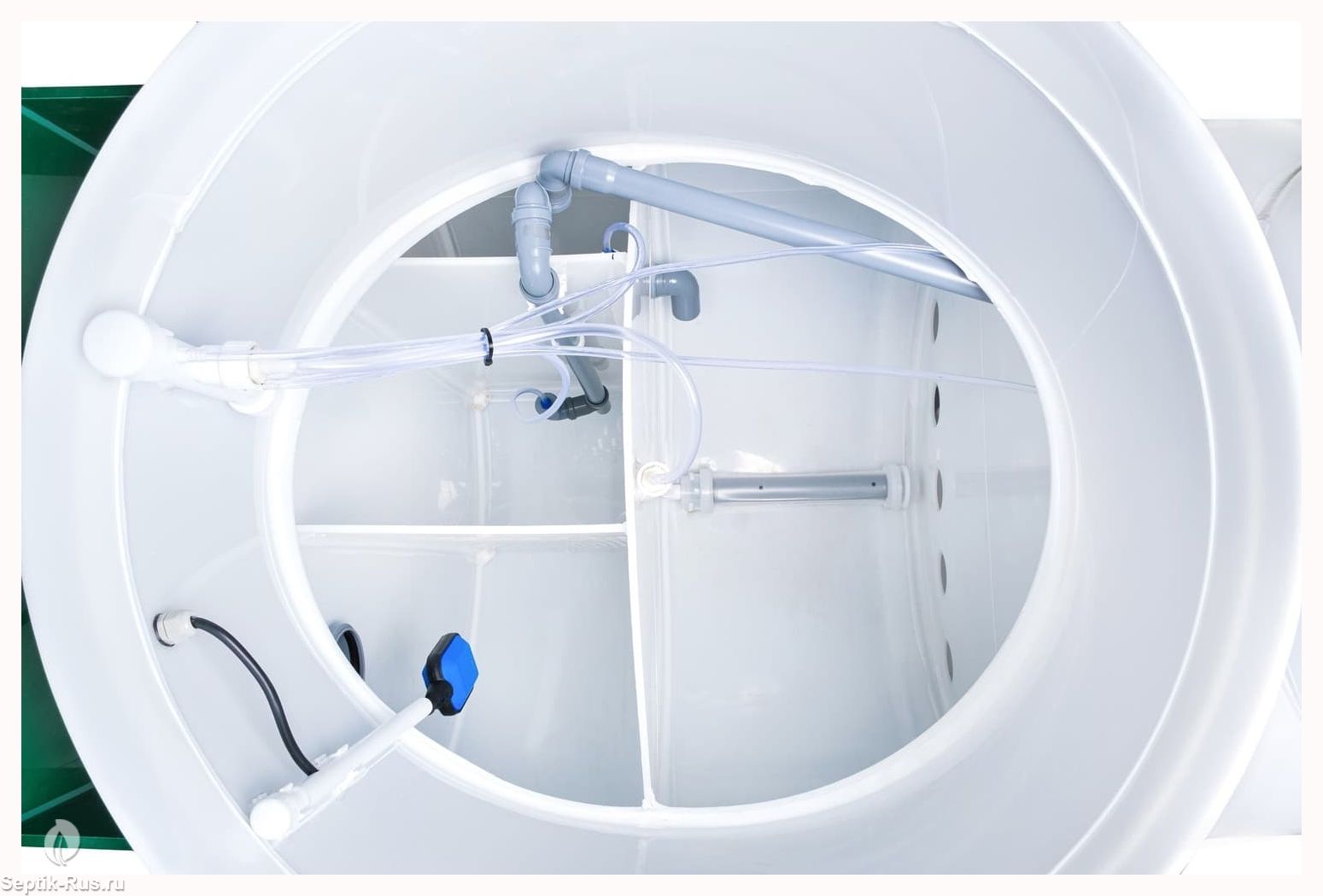 Такая степень очистки достигается за счет единственного в своем роде, запатентованного способа удаления фосфатов с помощью легкоокисляемой органики, что дает возможность получать на выходе фосфаты в количестве всего 0.2 мг/Дм3. При норме СанПин 1 мг/Дм3. При такой очистке сточных вод, вы имеете возможность сливать очищенную воду даже в рыбхозы. - Обслуживание один раз в год.
