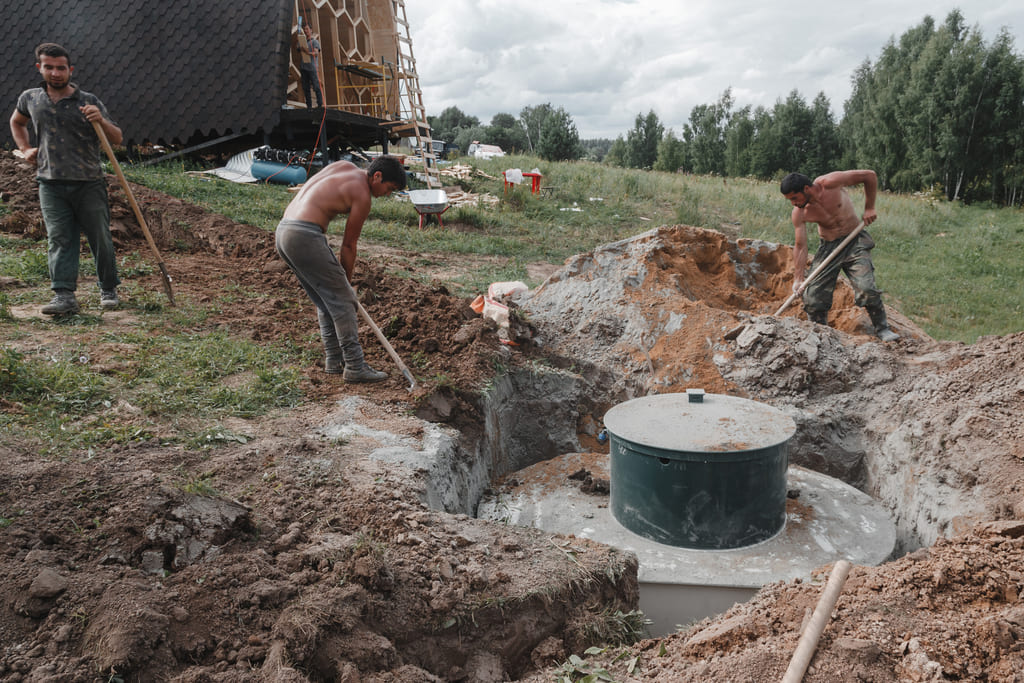 Поверх корпуса оборудования выполняется песчаная обсыпка на высоту 150-300 мм. Для подсоединения оборудования к внутренней канализационной магистрали применяют канализационные трубы, предназначенные для эксплуатации в наружной канализационной системе, обладающие диаметром 110 мм.