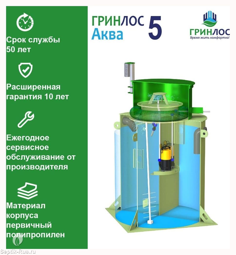 Отличительными особенностями септика ГРИНЛОС Аква 5 являются: