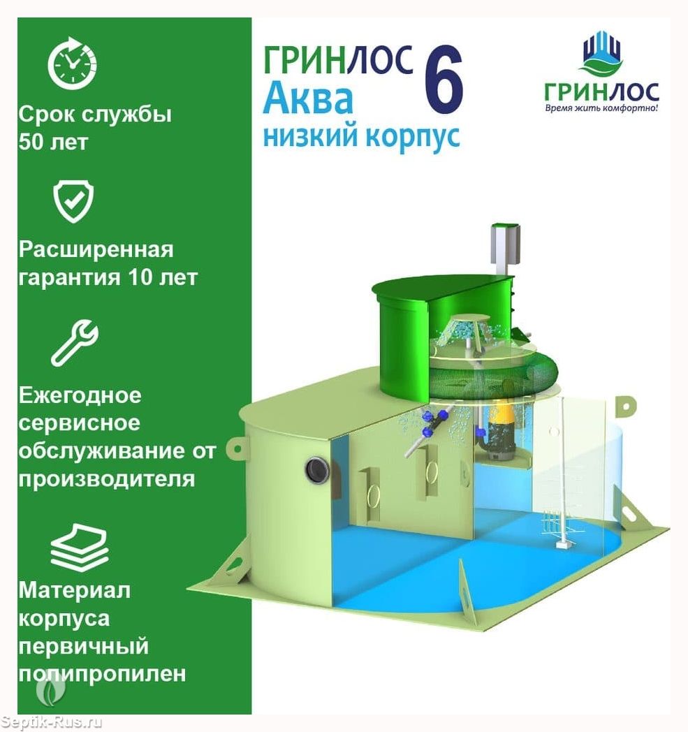 Доставим и установим септик ГРИНЛОС Аква 6 низкий корпус за 1 день по цене ниже конкурентов и скидкой на монтаж до 29%. Звоните!