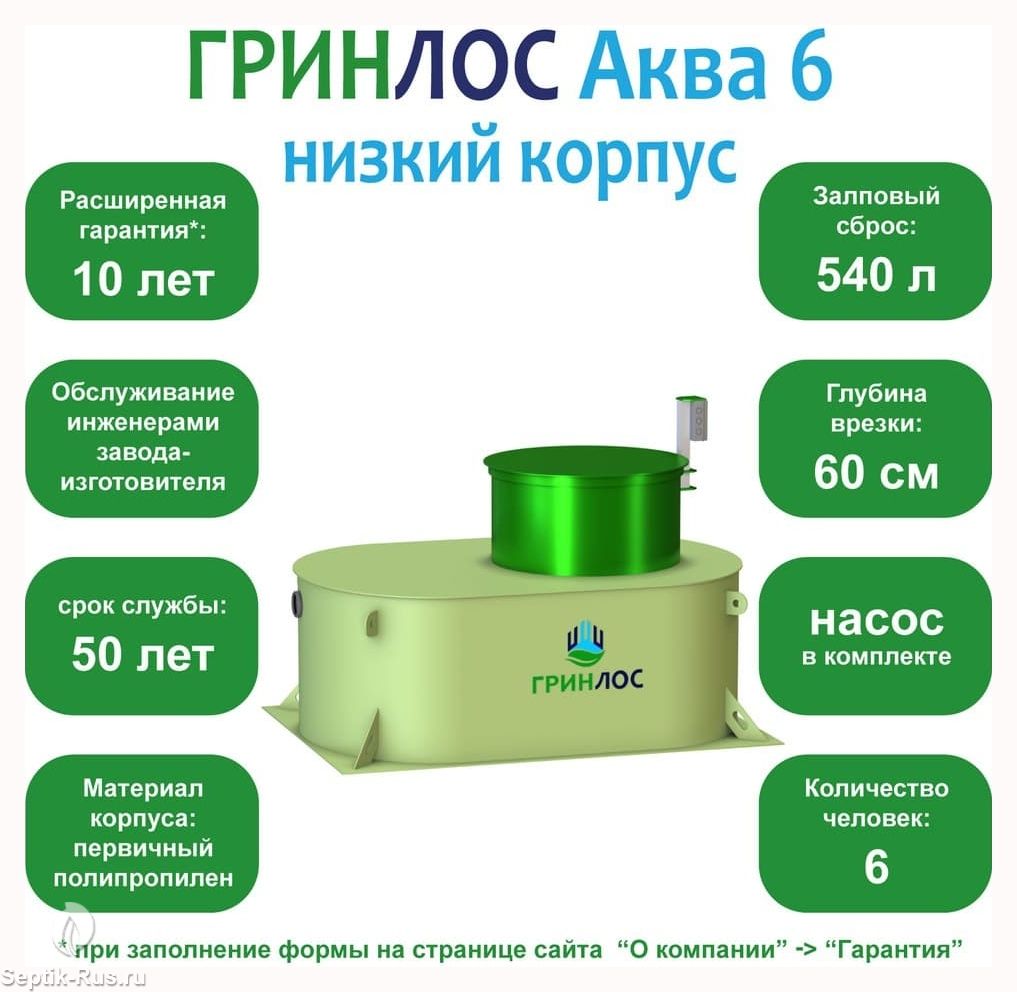 ГРИНЛОС Аква 6 низкий корпус (низкий корпус с насосом)