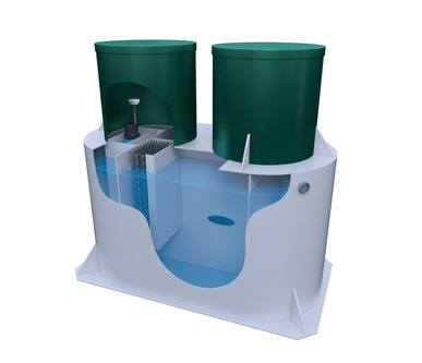 Отфильтрованная жидкость после биообработки поднимается до уровня фильтров и просачивается через них, достигая полной чистоты. После прохождения через фильтры вода может быть сброшена в ландшафт или использована в дальнейшем в технических целях.